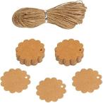CINECE 値札 タグ おしゃれ 100枚 円形 クラフト パンチ 紙 茶褐色 糸付き 下げ札 ラベル ラッピング 商品 ネーム