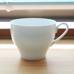 繊細な縦彫りと細くくびれた腰が特徴の、白いコーヒーカップ。